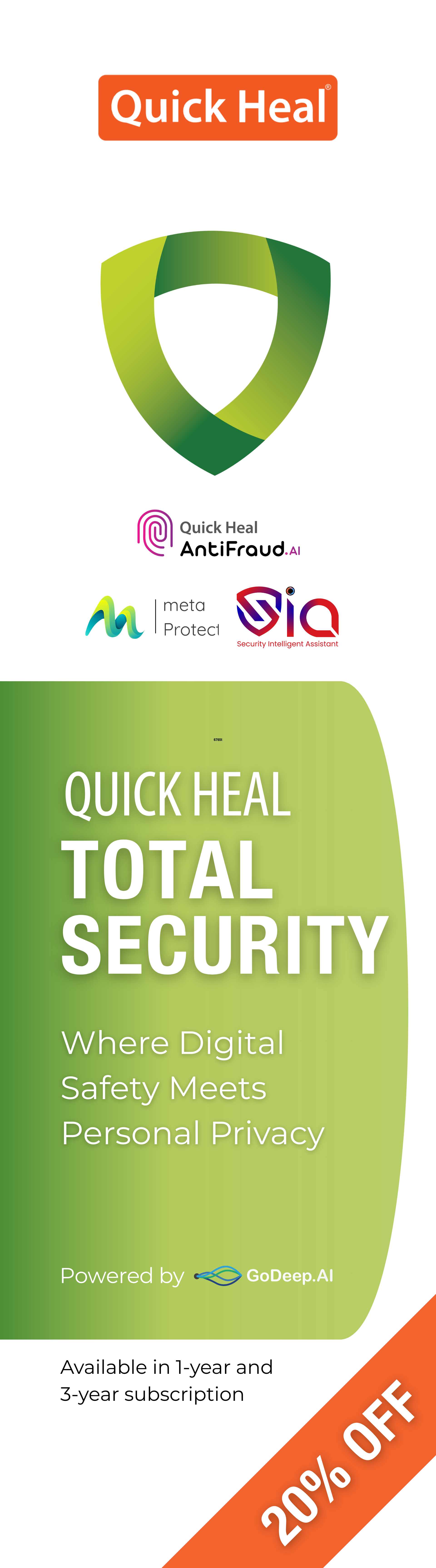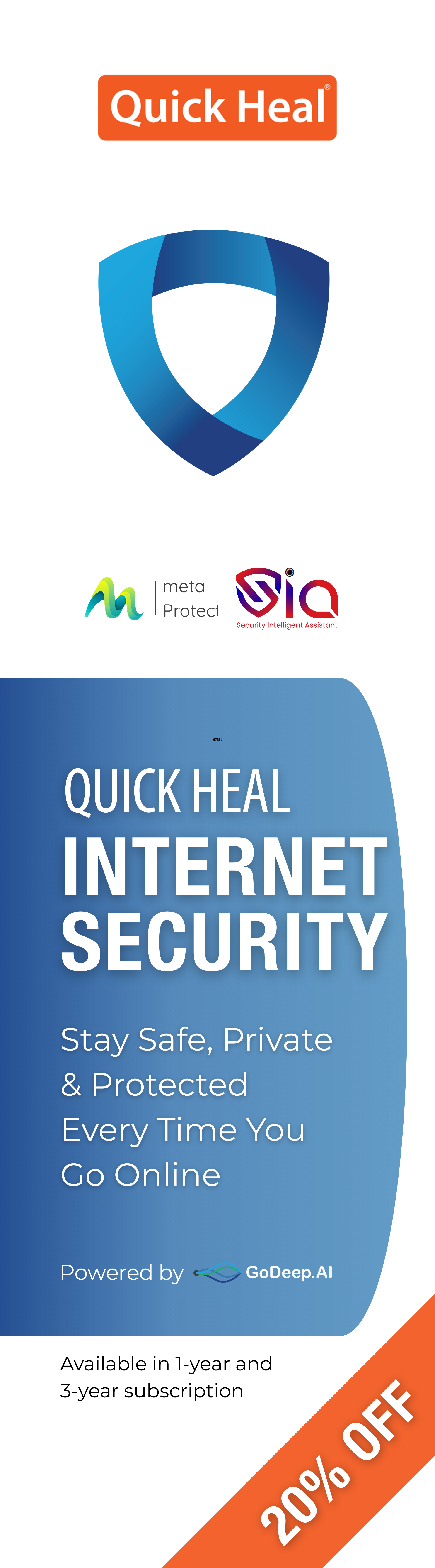 Secure your Wi-Fi and PC from threats when you browse, bank, chat, and email. Tune up and revive your PC performance with Quick Heal’s breakthrough technology