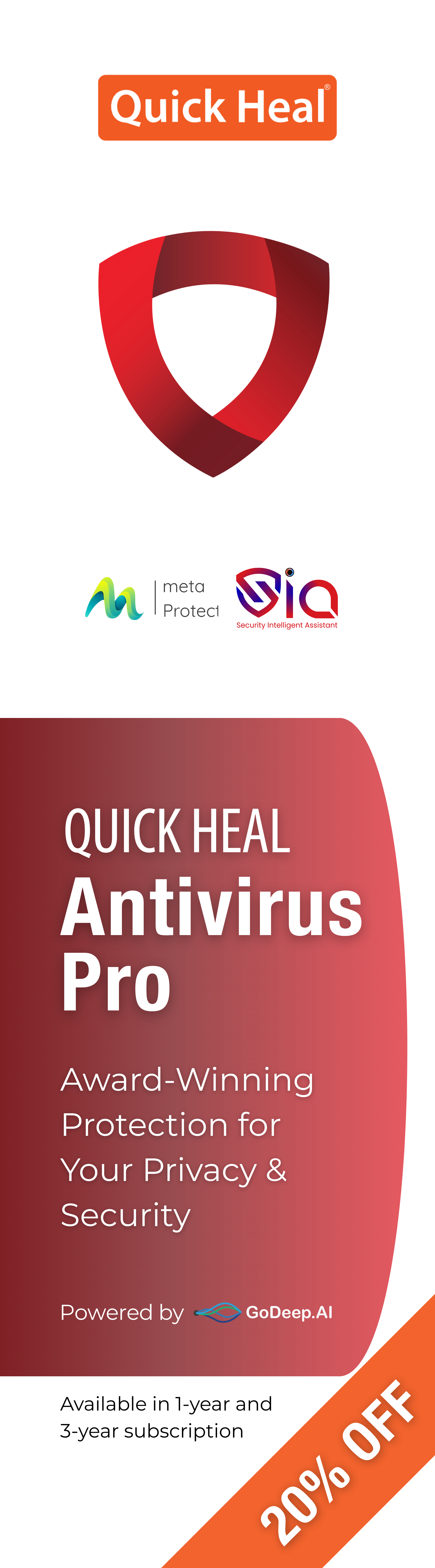 Secure your Wi-Fi and PC from threats when you browse, bank, chat, and email. Tune up and revive your PC performance with Quick Heal’s breakthrough technology